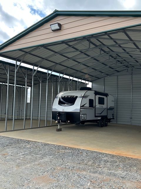 Our carport storage options provide a sheltered space for your vehicles, boats, or RVs. These covered areas offer protection from the elements, have concrete foundations as well as power available.